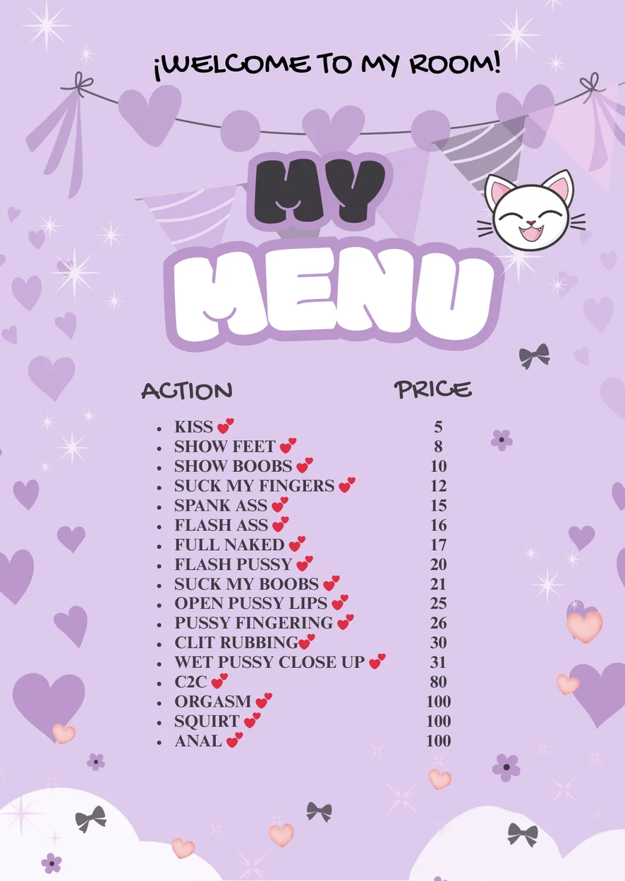 Doggy Style, Spanking, Camel Toe, Cock Rating, Dirty Talk, Erotic Dance, Dildo or Vibrator, Striptease, Deepthroat, Jerk-off Instruction, Role Play, Sex Toys, Anal Toys, Nipple Toys, Blowjob, Massage, Tittyfuck, Masturbation, Orgasm, Handjob, Footjob, Oil Show, Squirt, Upskirt